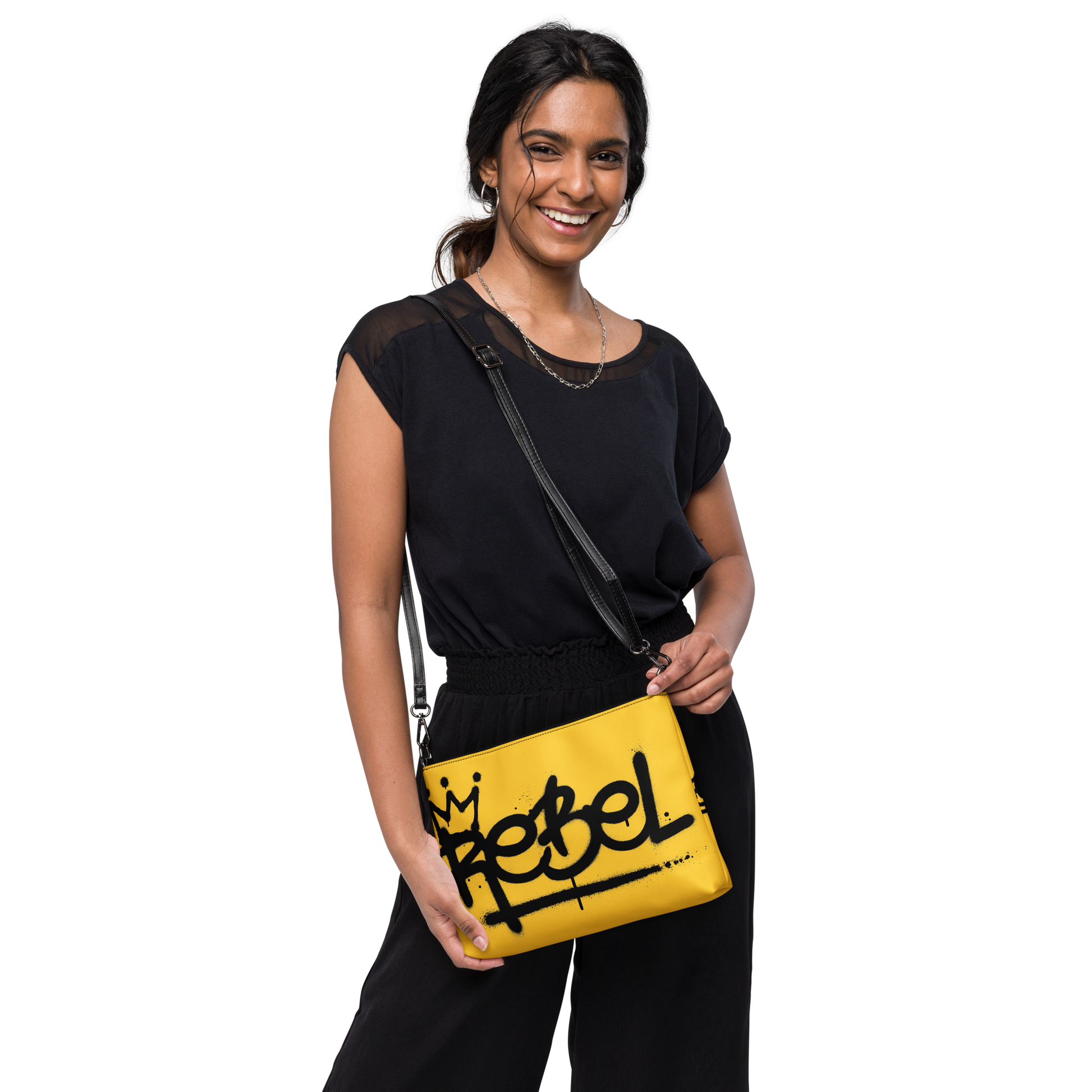 Experience fearless fashion with our Yellow Crossbody Bag - #Rebel. Inspired by graffiti, this bag is perfect for the #Rebel in you. Stay stylish and confident with this edgy crossbody which will keep your essentials secure and organized.